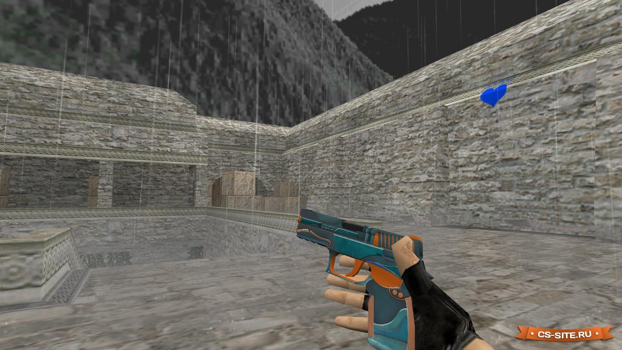 Очень неплохая модель оружия P250 «Aquaique» для CS 1.6 из CS:GO, которая выполнена в бирюзовых и оранжевых цветах. Пистолет выглядит очень стильно и уверенно. В архиве же с файлом Вас будет ожидать полная комплектация с новыми звуками пистолета P250 из CS:GO. Приятной игры!