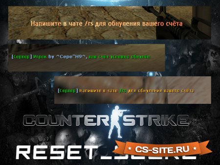 Наверное, самый лучший плагин для обнуления счёта на сервере Counter Strike 1.6 под названием «ResetScore v0.2». Хорош он тем, то что выводит большое HUD сообщение о том, что на сервере можно обнулить свой счёт с помощью специальной команды....