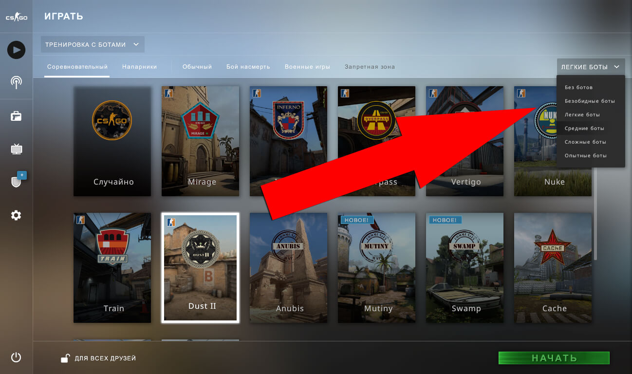 Как изменить сложность ботов в КС:ГО